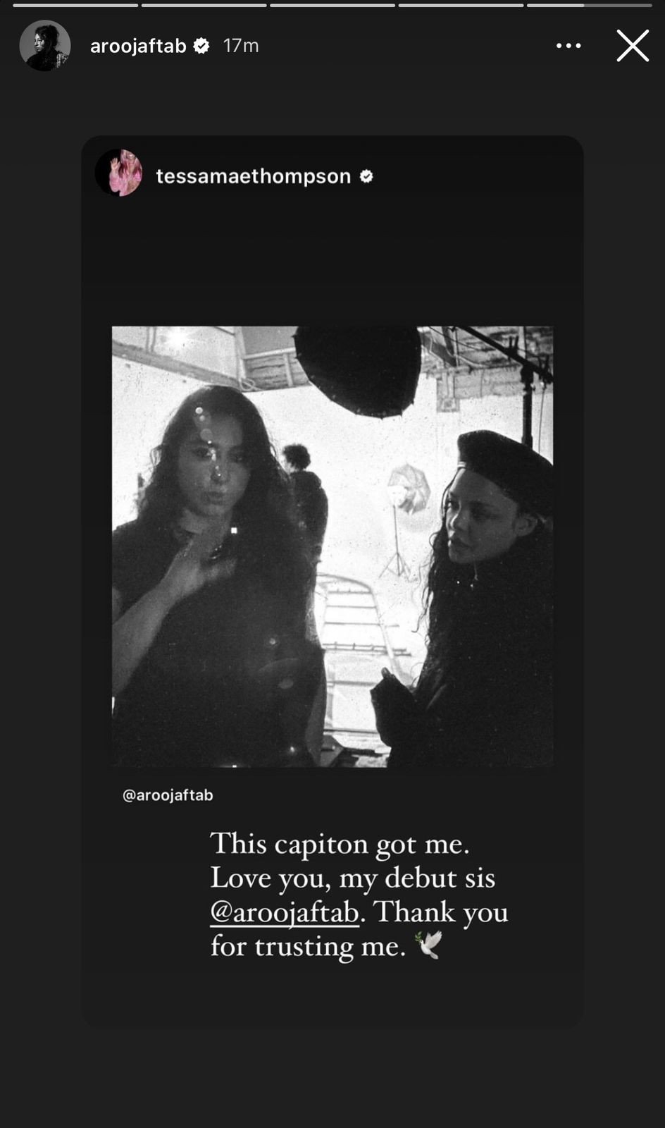 Aftab also shared her thoughts on Thompson, saying, “Her work and her personality are incredibly inspiring and strong. This project is really special to both of us. I am extremely thankful. And the music video will be released tomorrow.”