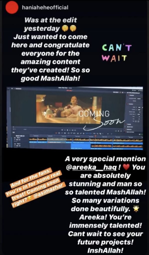 Asim also shared that Hania came all the way from Islamabad to be part of the song.