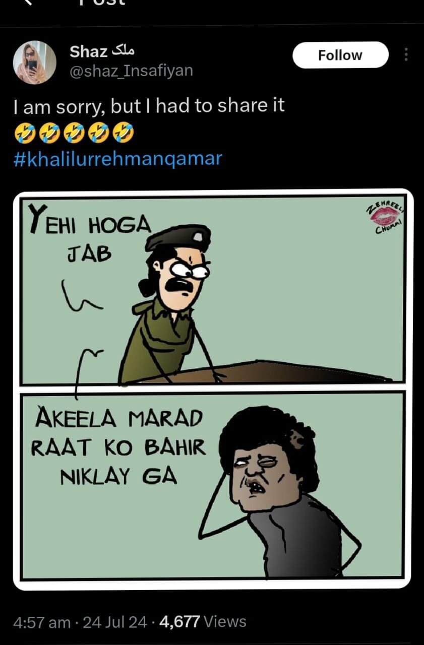 Controversial writer Khalil Ur Rehman Qamar is deeply disliked by all progressives for being a misogynist who is waging a war “against feminists” as he says. The aftermath of being kidnapped and held for ransom by a woman keeps unfolding for him, and for the internet. Pakistan’s famous meme brigade has found fodder in the whole fiasco.