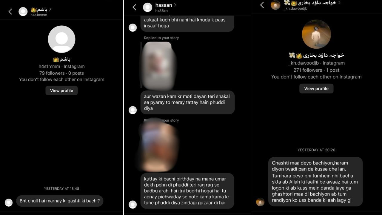 The screenshots shared by the girl depict the threatening and abusive language used by men sliding into her DMs.