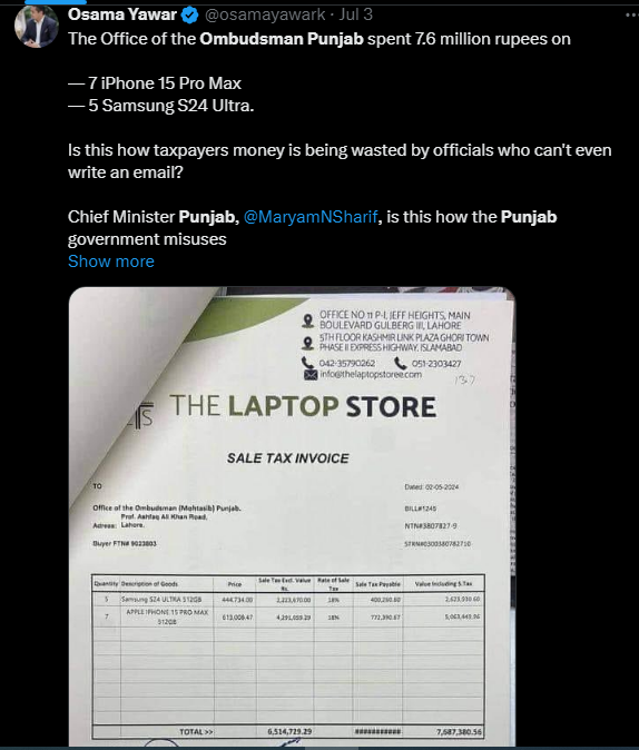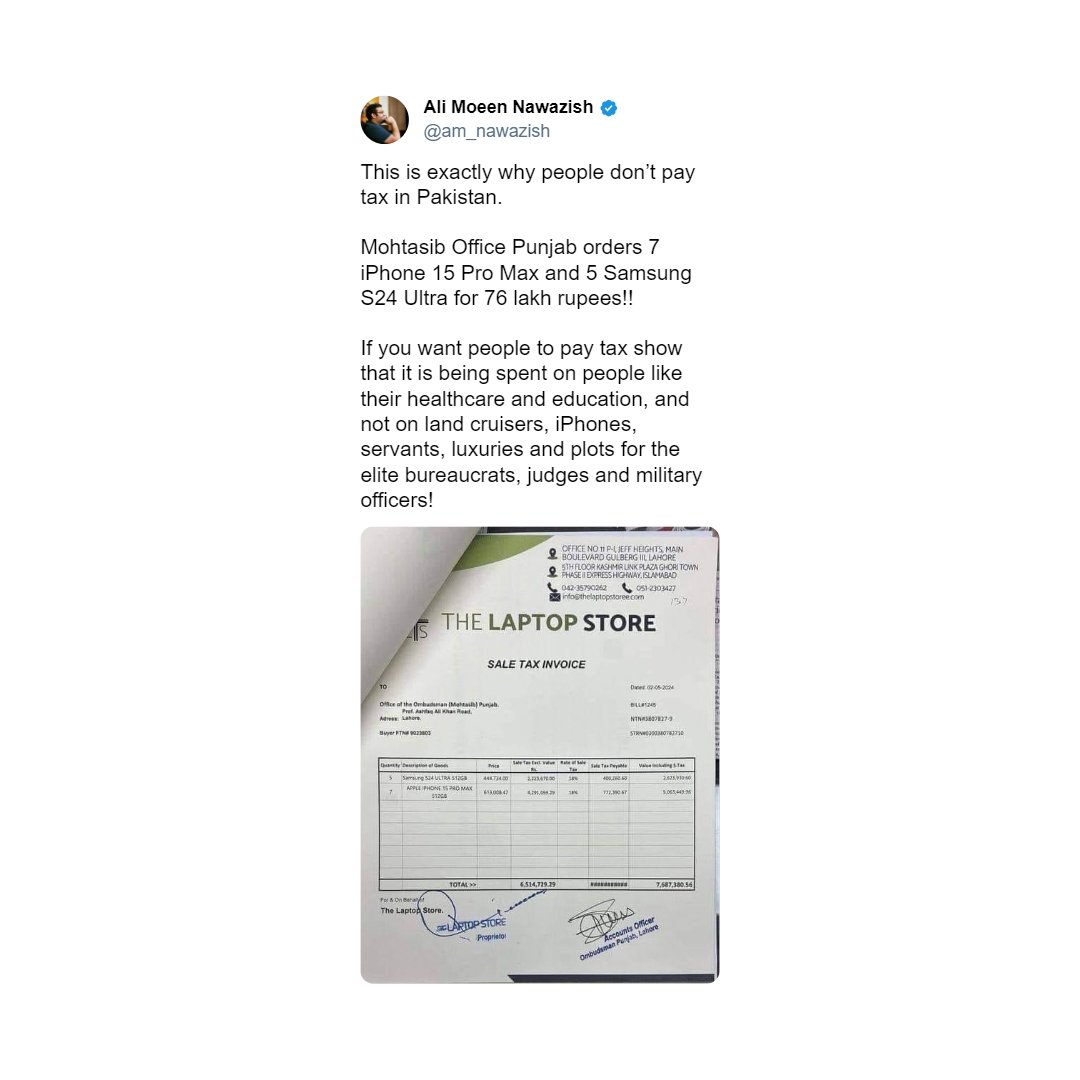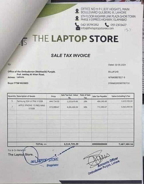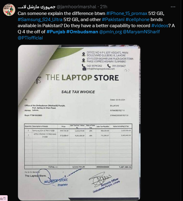 An official notification of a “sale tax invoice” from the Punjab Ombudsman placing an order of five Samsung Galaxy S24 and seven iPhone Pro Max worth Rs. 76 lacs created a stir on social media. Netizens criticised the government for wasting money, but the government claimed otherwise.