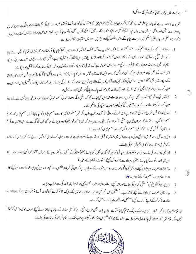 A revised fatwa issued by Darul Uloom Karachi dated June 16, 2024, prompted SICHN to discontinue the functionality of the Human Milk Bank and seek further guidance from Dar ul Uloom and Islamic Ideology Council.