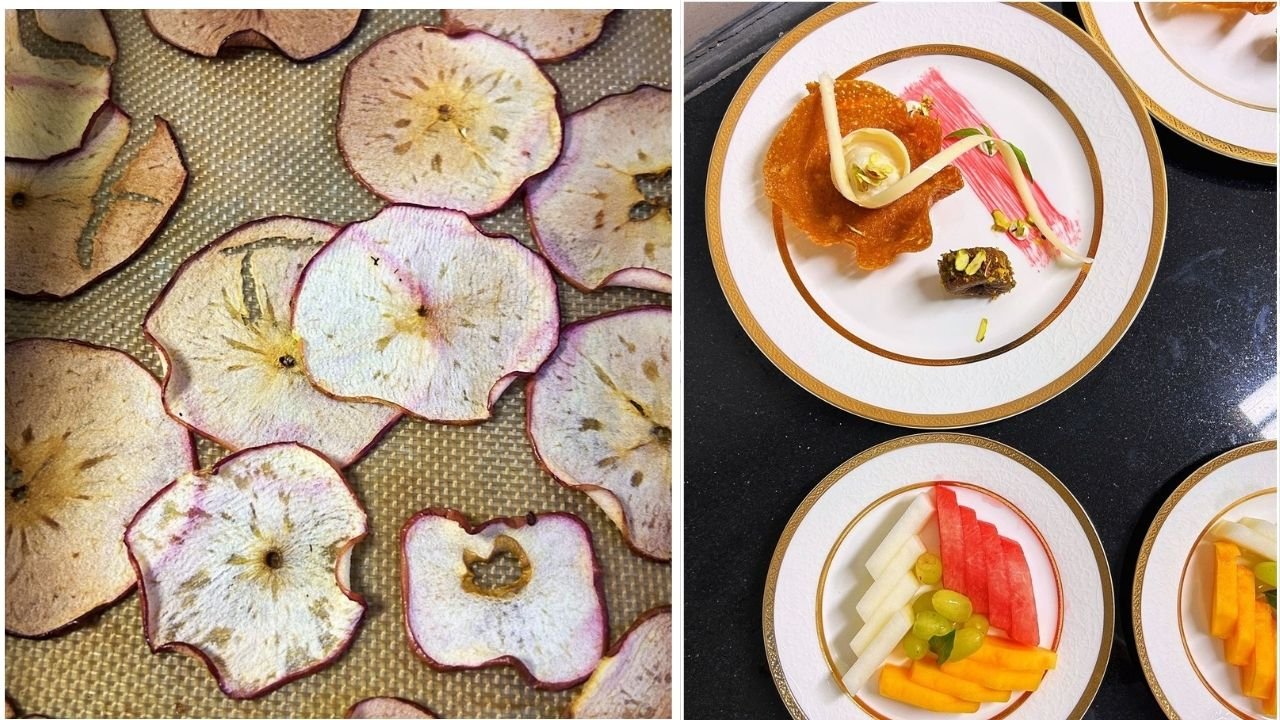 He recounted how the dessert was specially made, keeping in mind the time of the year, which is the fall season. It had stewed apples with peanut butter cream and some dehydrated apple flowers on top of the apple crumble. “This was a play on apple crumble,” he ingeniously pointed out. “It’s funny, this was the first dessert I ever made, and I got an opportunity to serve it on such a big platform,” he added further.