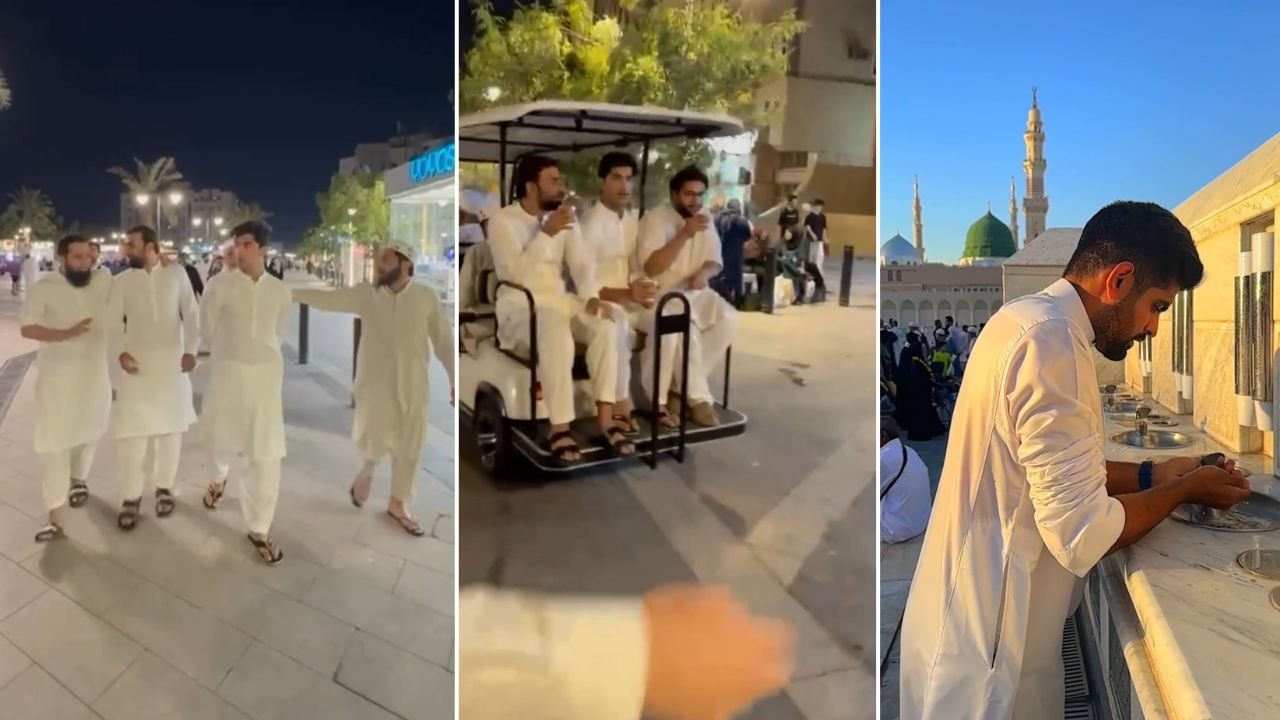 National cricketers have shared beautiful and soulful videos on social media while walking in the streets of Madinah and arriving at Masjid Nabawi (PBUH).