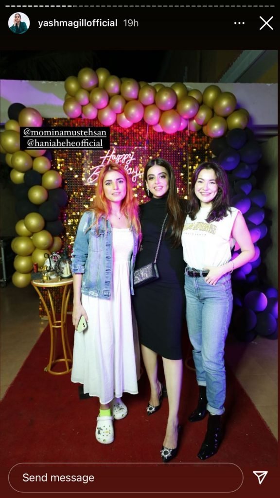 A-list celebrties like Hania Aamir, Feroze Khan, Momina Mustehsan, Adeel Hussain, Nida Yasir, Yasir Nawaz, Nida Yasir, Hira, Mani and Agha Ali and Ushna Shah was also present at the birthday party.