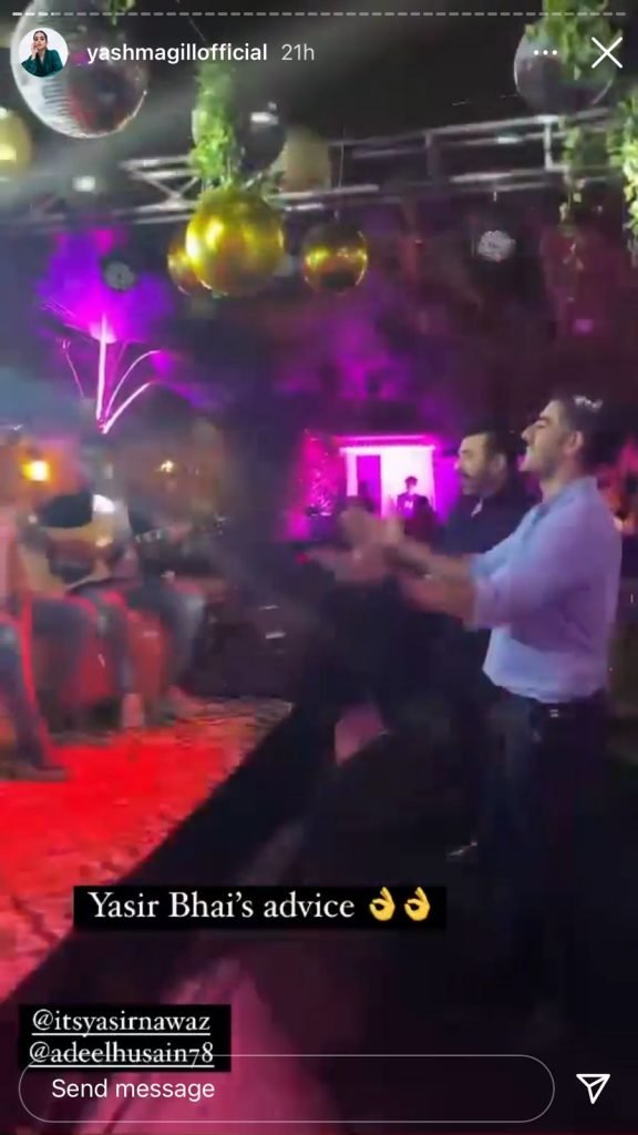 The Qurban star took to her Instagram account to share the pictures from her birthday celebrations. She arranged live musical performances on which actors Adeel Hussain and Yasir Nawaz even danced on.