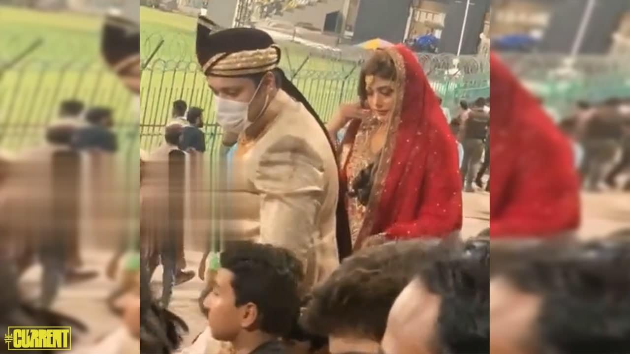 A bride and groom reached the National Stadium in Multan to meet Pakistan’s ace batsman Babar Azam.