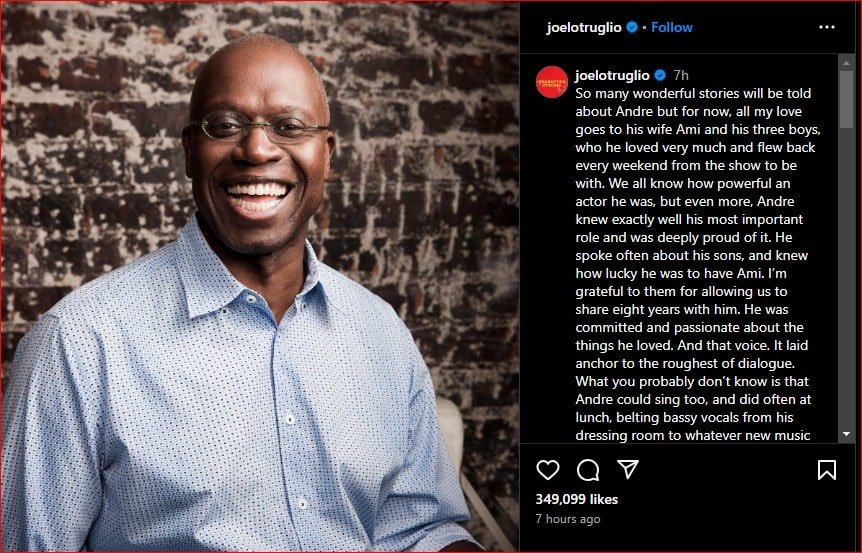 “Sending love to Andre’s family and friends and all of us who had the honor of working with him,” Joel penned.
