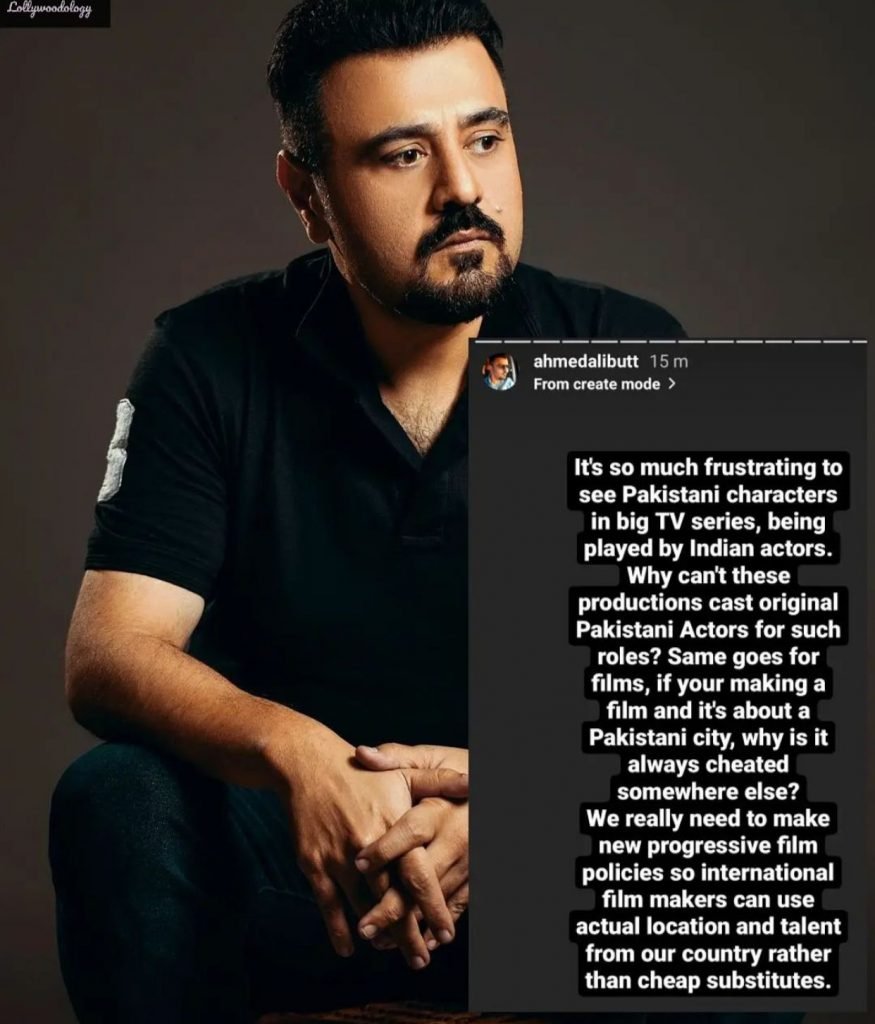 Ahmed Ali Butt in his recent Instagram story has slammed big international productions for not casting Pakistani actors to play the character of a Pakistani in movies and films. The Punjab Nahi Jaungi actor also criticised the production houses for casting Indian actors instead.