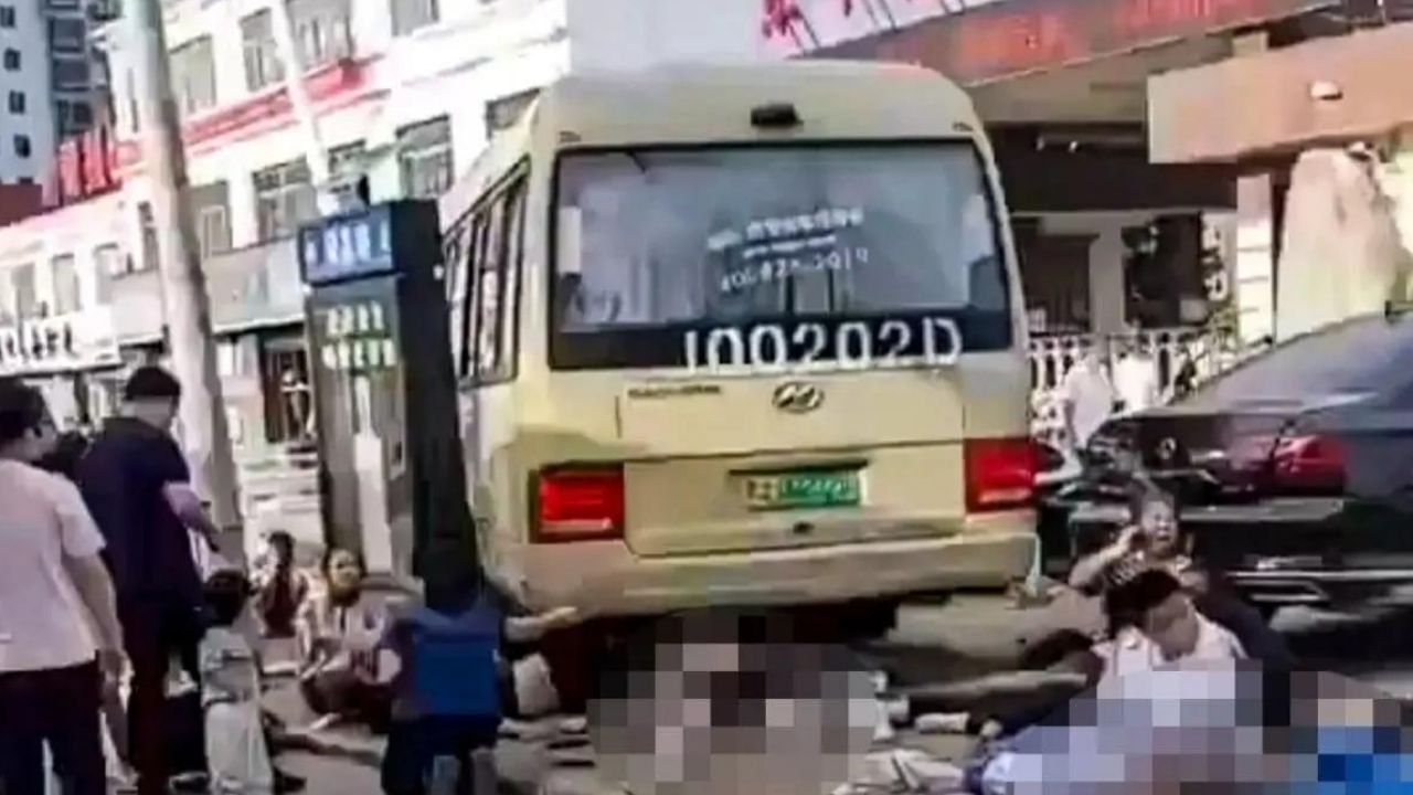 The bus ran into a group of parents and children on the side of the road, according to CCTV.