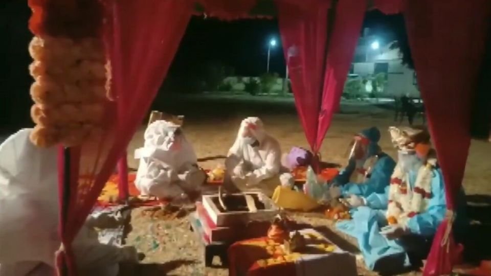 A couple from Rajasthan, India got married in personal protective equipment (PPE) after the bride tested positive for COVID-19.