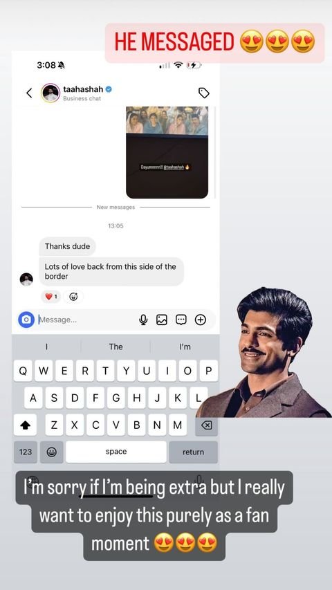 Shah is an Indian actor who played the character of Tajdar in Netflix’s ‘Heeramandi’, directed by Sanjay Leela Bhansali. Both Yashma and others complimented him on his performance, which was well appreciated. Through texts, Taha expressed gratitude to Yashma and sent love from across the border.