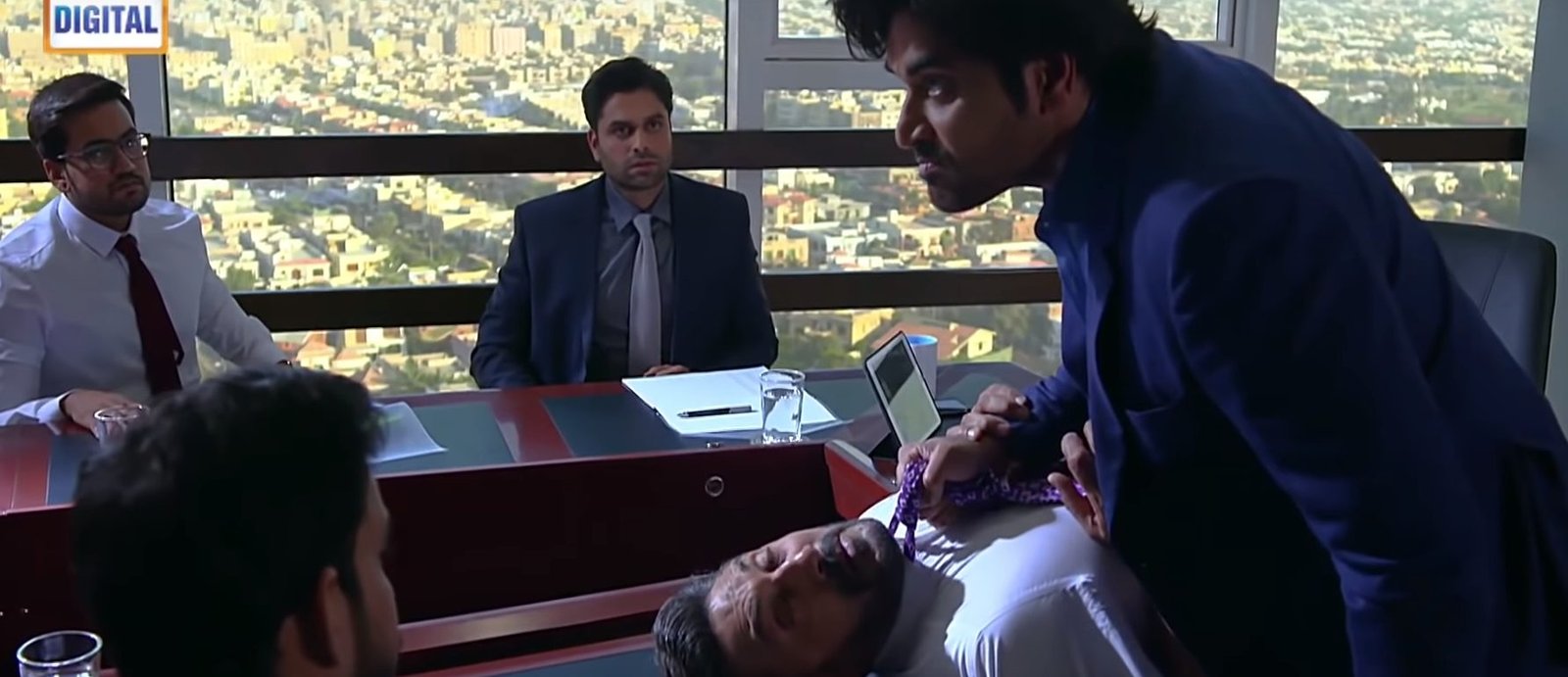 He barges into Shehwar’s office and grabs him by the collar, threatening him against physical harm if he ever comes near his son or tries to take his son away. Shehwar’s employees watch the whole thing and one thing is obvious – money cannot buy courage.