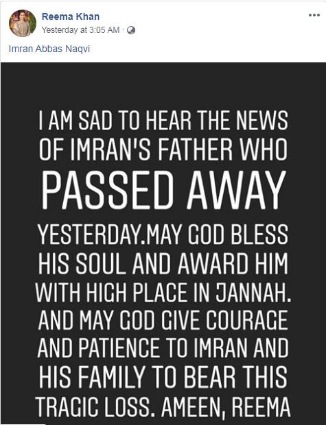 “Perhaps this is the darkest time of my life…I lost my father, my strength, my backbone. I can’t stand up straight at the moment. Thanks for your messages and posts but I won’t be able to reply to them for a while,” Imran wrote on Instagram.