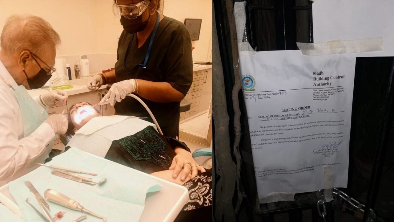 A team led by one of the Sindh Building Control Authority’s assistant directors visited the clinic on Thursday evening, stopped the staff from performing their regular activities, sealed the clinic, and put a notice outside the premises.
