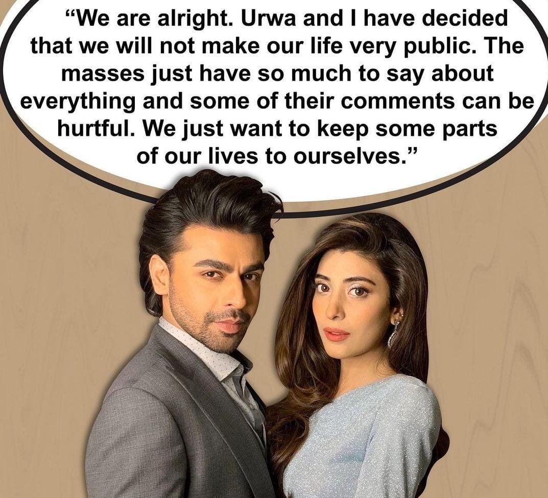 Earlier last year it was reported that Farhan and Urwa have parted ways amicably, however recently some news portals informed that maybe the couple has reconciled. However the Udaari pair has never made a public statement about their split or alleged patch-up.