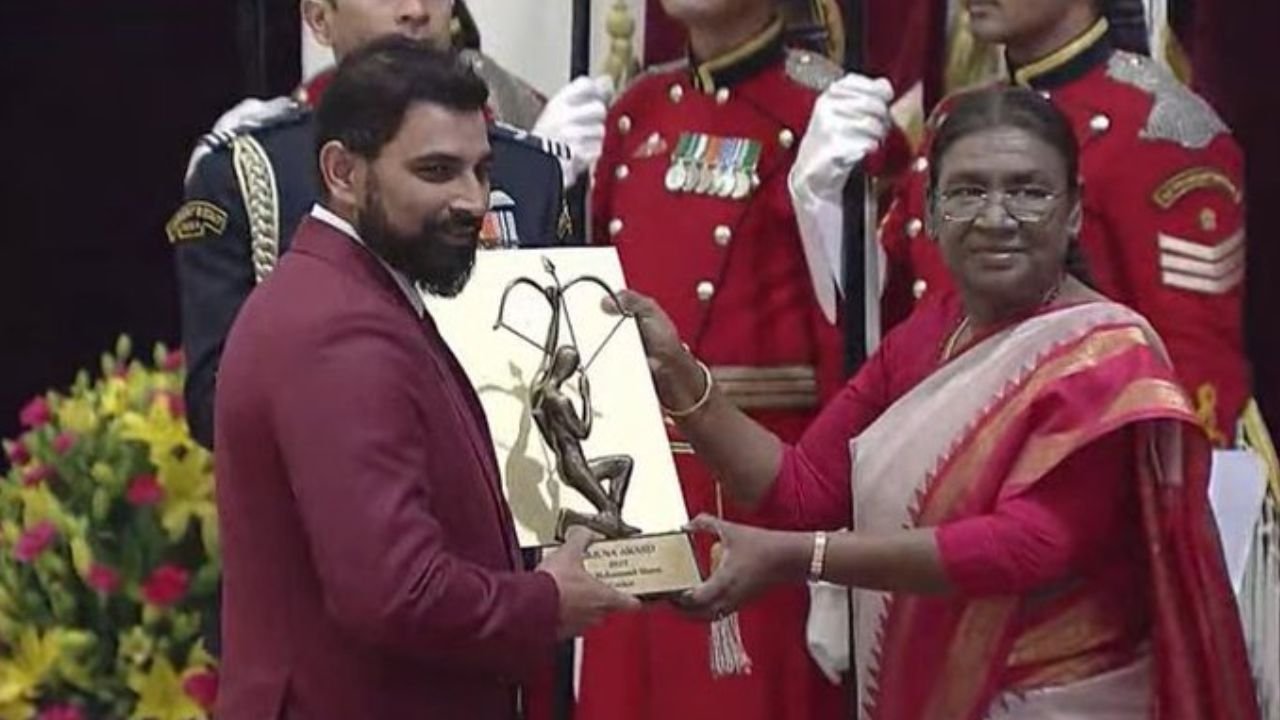 President Droupadi Murmu presented the Arjuna Award to Mohammad Shami.