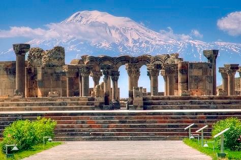 The Ministry of Information and Broadcasting celebrated the news by sharing a picture of the 7th-century Zvartnots Cathedral in Armenia.