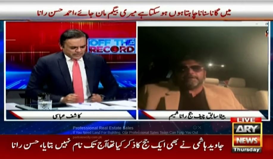 Former Chief Judge (CJ) of Gilgit-Baltistan Justice (retd) Rana Shamim’s son appeared on Kashif Abbasi’s show ‘Off the Record’ yesterday (Thursday) while sitting in a car.