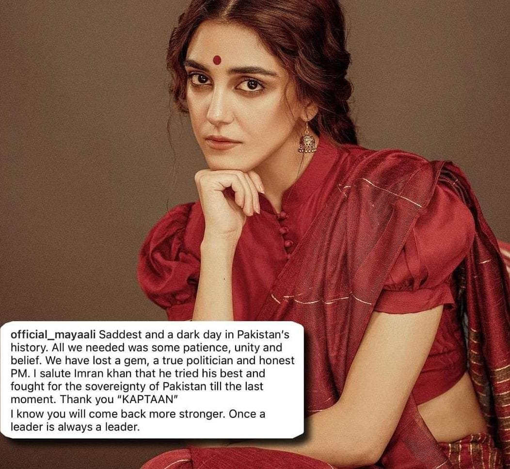 Earlier the Teefa In Trouble star came forward in support of Imran Khan who has been removed as Prime Minister of Pakistan through a no-confidence motion in the National Assembly.