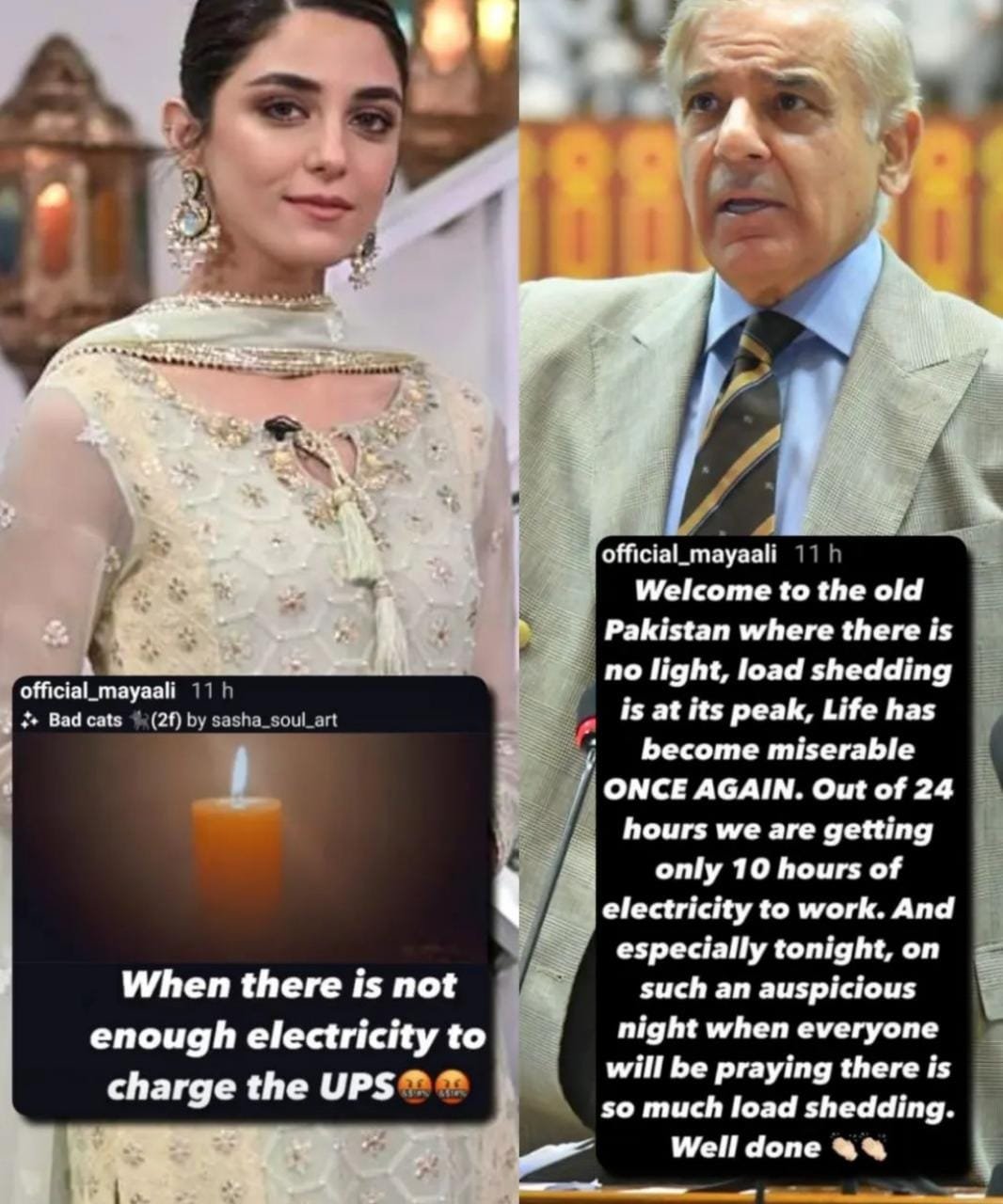 Actor Maya Ali took to her Instagram stories to share her disappointment on the increasing electricity crises in the country. The A-list heroine said that life has become miserable ever since the new the government has taken over. She is upset with the load shedding being at its peak.