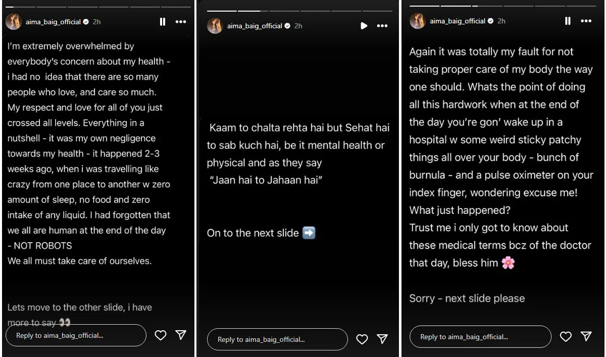 Renowned singer Aima Baig, who recently said that she had a heart attack, has clarified to her fans that she did not actually have a cardiac problem.
