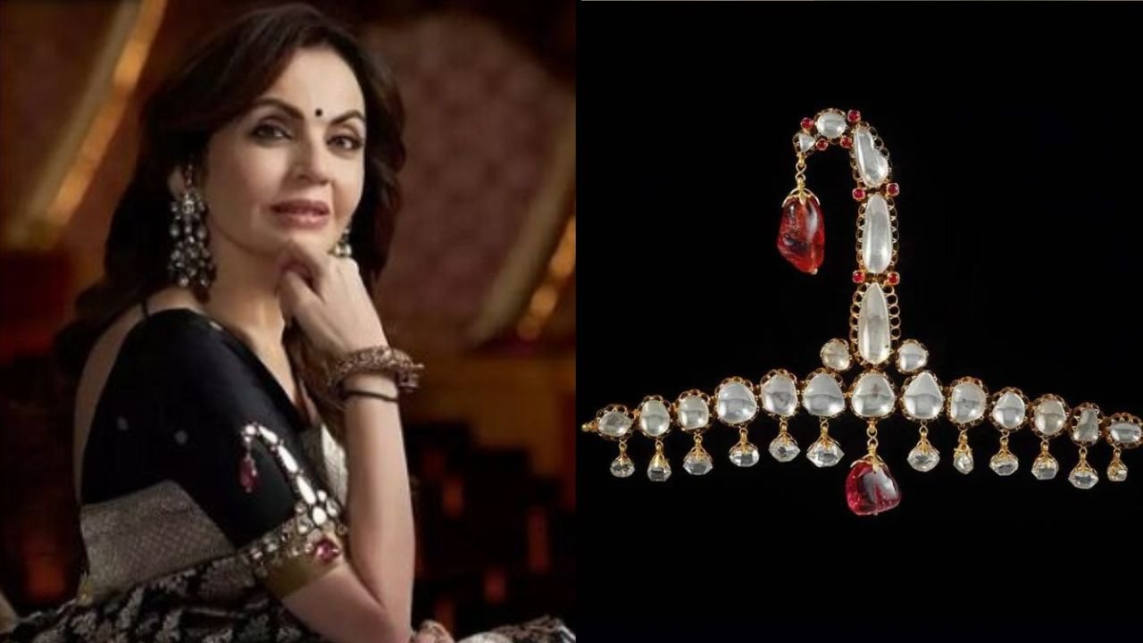 Nita Mukesh Ambani, wife of the richest man in Asia, caught everyone’s attention at the recent Miss World ceremony in Mumbai. She wore a special piece of jewelry once owned by a Mughal emperor, along with a black and gold sari.