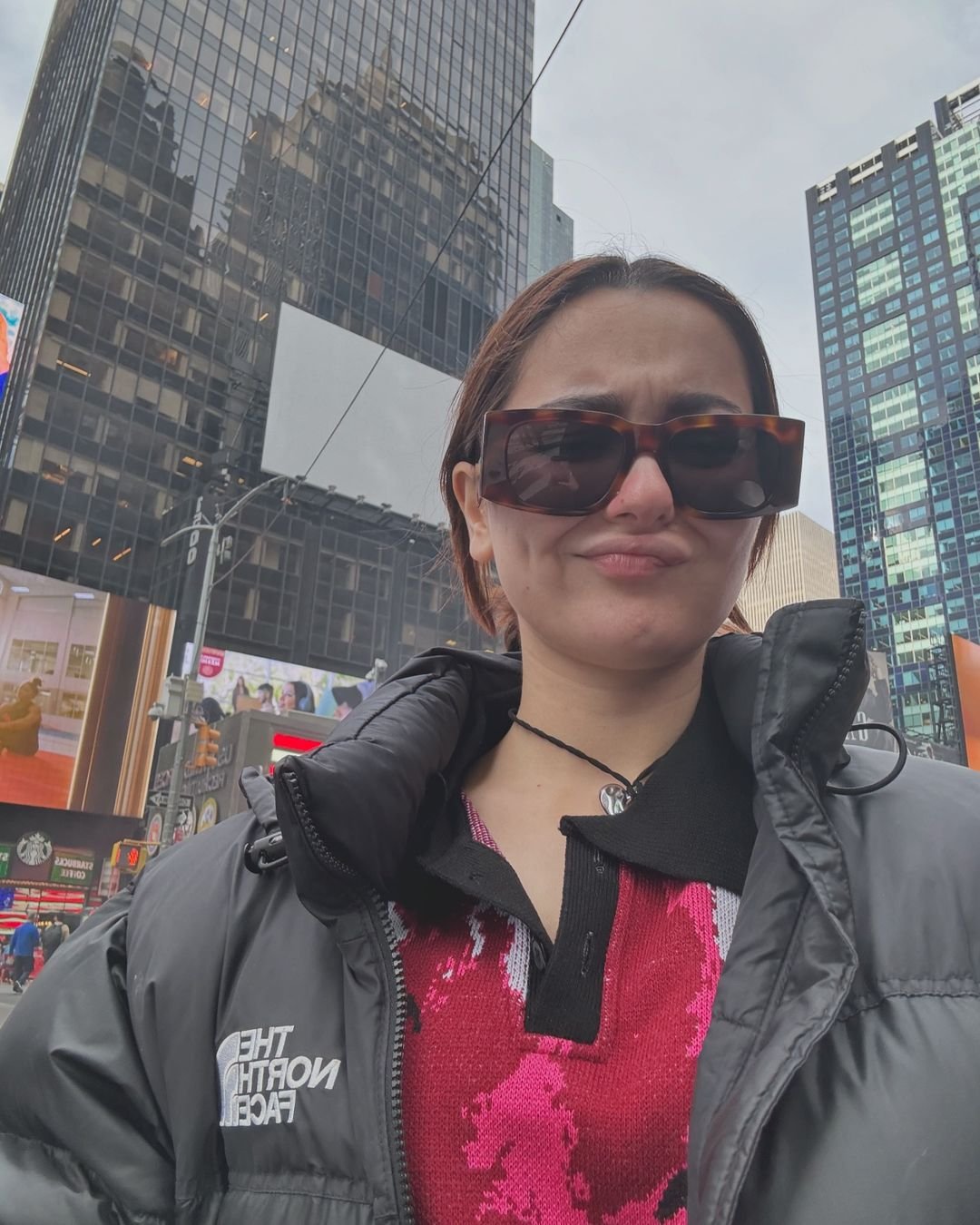 Hania Aamir is currently taking a well-deserved break in New York, sharing captivating glimpses of her trip with her followers.