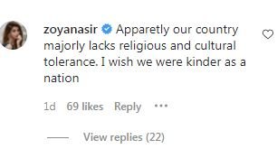 Zoya supported Tara by commenting, “Apparently our country majorly lacks religious and cultural tolerance. I wish we were kinder as a nation.”