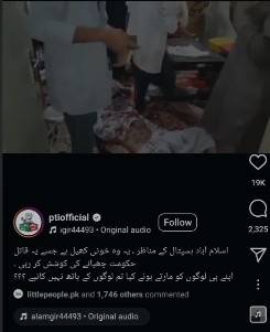 PTI’s official page on Instagram shared the video; however, it was later deleted.  Some PTI supporters are still sharing the video, claiming it to be the victims of an alleged massacre after the security forces launched a crackdown on PTI protestors in Islamabad.