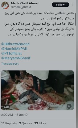 Sabir Shakir posted the video on November 29 with the caption: “This is the floor of a hospital in Islamabad.” The post has garnered more than 116K views till now with more than seven thousand reposts and eleven thousand likes.