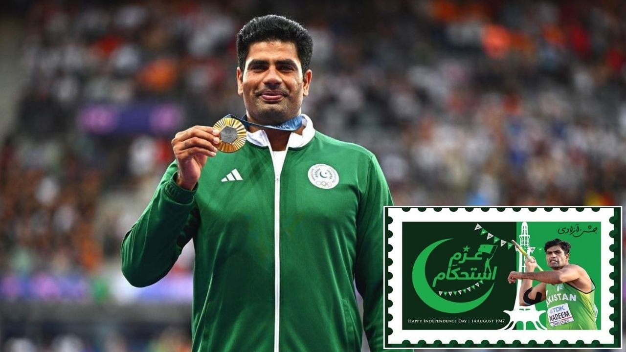 The Government of Pakistan has released a postage stamp with the title of ‘Azm-e-Istehkam’ and an image of Arshad Nadeem on the occasion of Independence Day on the instructions of Pakistan Prime Minister Shehbaz Sharif.