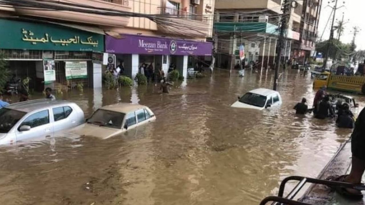 The streets of Karachi got flooded after the sudden downpour while water was still standing in different places. However, the discharge of rainwater from the Korangi Causeway is underway.