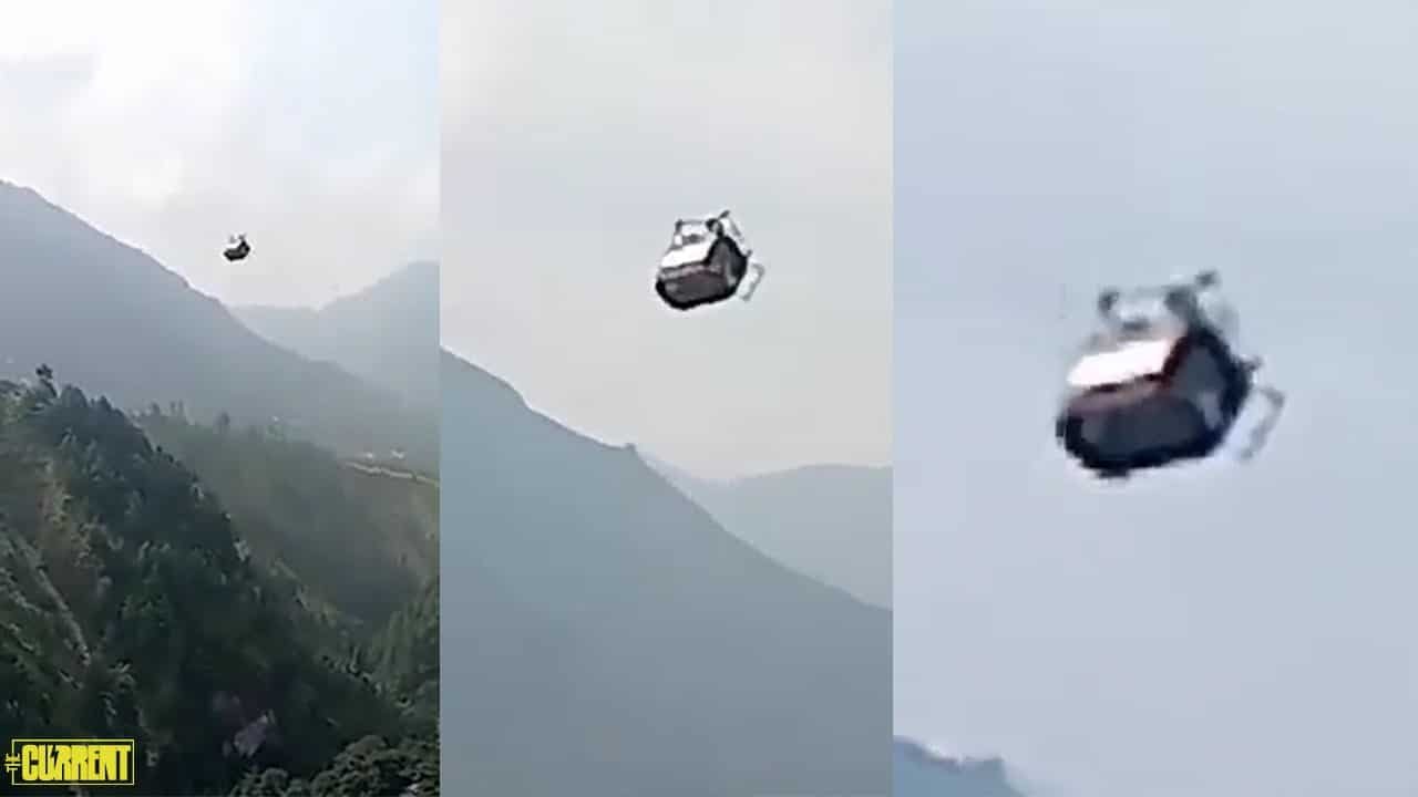 Videos show the chair lift suspended high above a valley, tethering at a precarious angle, connected to land via a single cable. The cables reportedly snapped around 6 am, with the children’s ordeal spanning five hours as of the time this report is being filed.