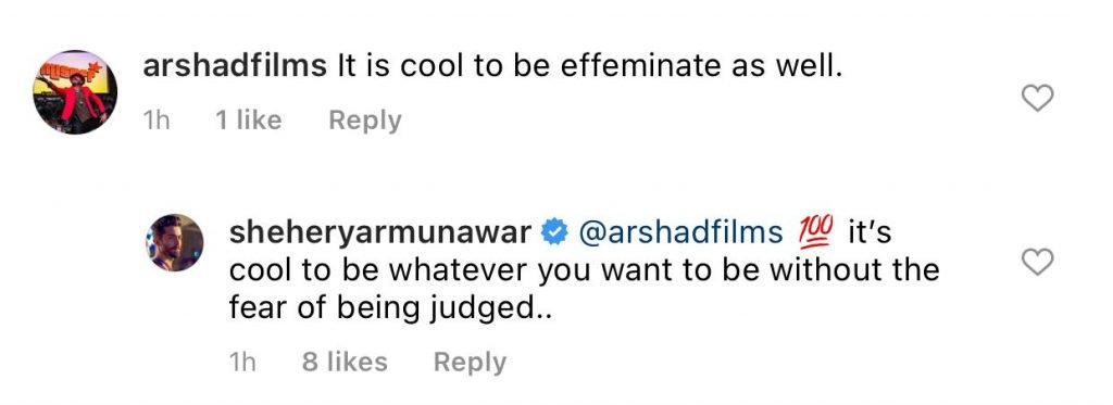 An Instagram user commented on his post that it is cool to be effeminate as well. To which he replied, “Arshad, It’s cool to be whatever you want to be, without the fear to be judged.”