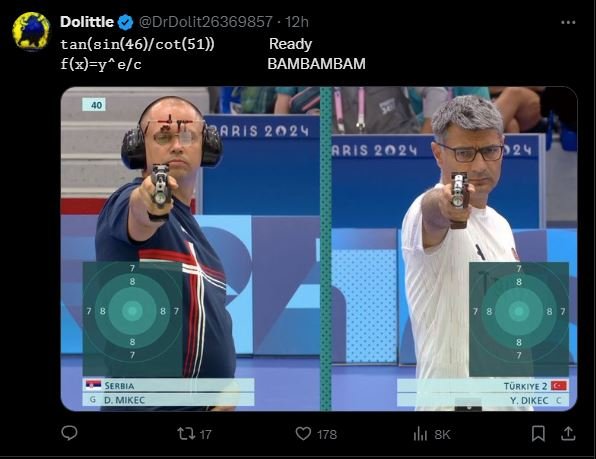 Unlike other shooters who use ear protectors and special lenses for accuracy, Dikec appeared to be wearing only his prescription glasses and just a t-shirt with pants. He casually kept his non-shooting hand in his pocket as he aimed and fired, helping him win the silver medal.