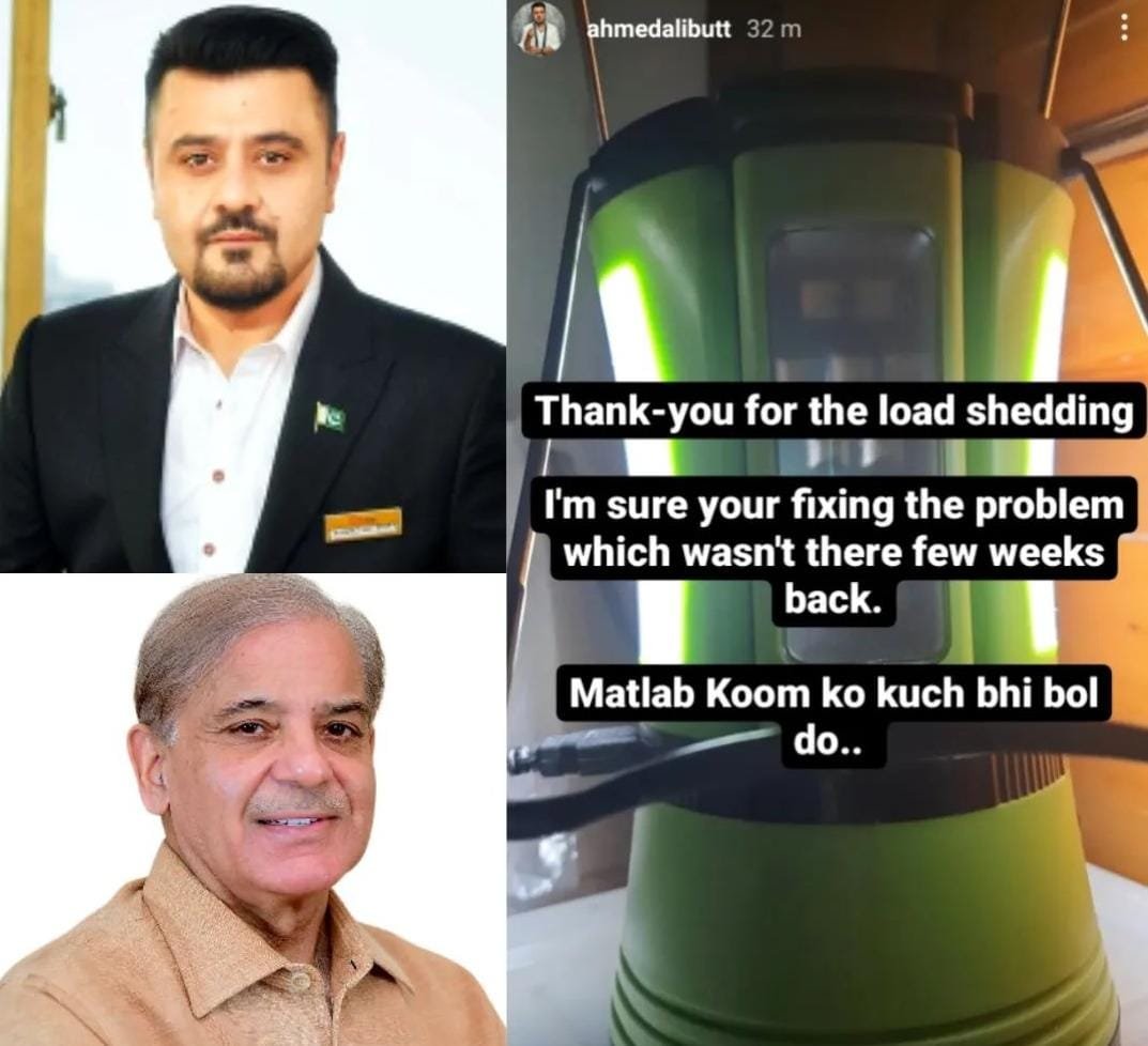Actor Ahmad Ali Butt took to his Instagram stories to take a jibe at PM Shehbaz Sharif for load shedding across country.