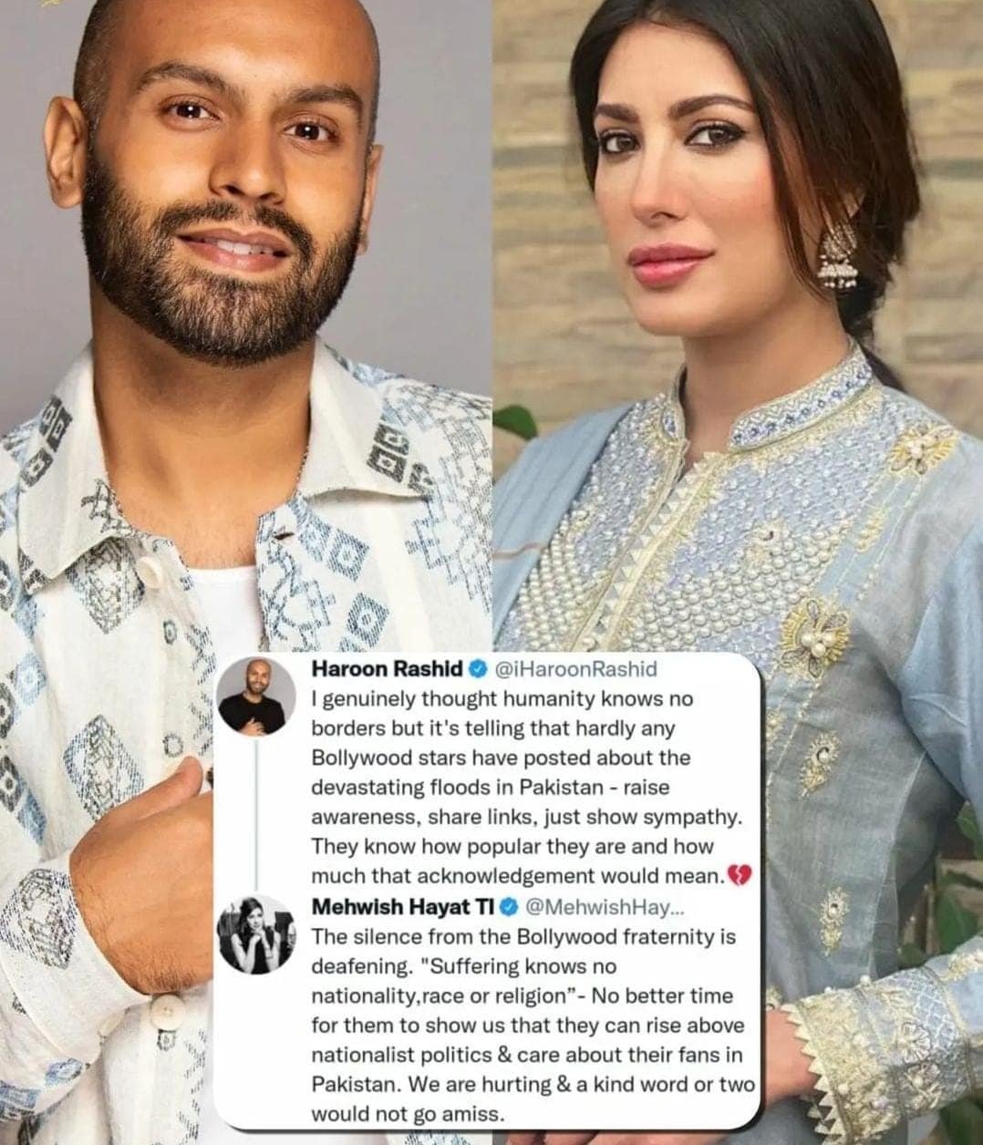 In his original post, Haroon had said, “I genuinely thought humanity knows no borders but it’s telling that hardly any Bollywood stars have posted about the devastating floods in Pakistan – raise awareness, share links, just show sympathy. They know how popular they are and how much that acknowledgment would mean.”