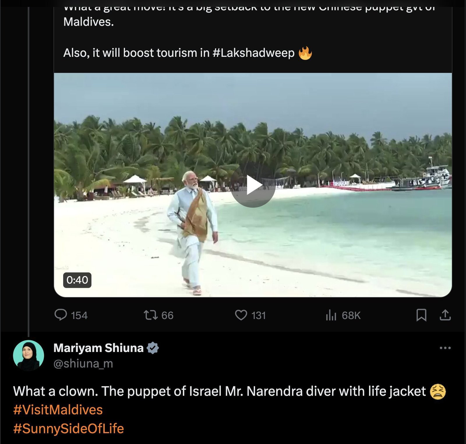 The incident led to the trending of the hashtag #BoycottMaldives on X in India.