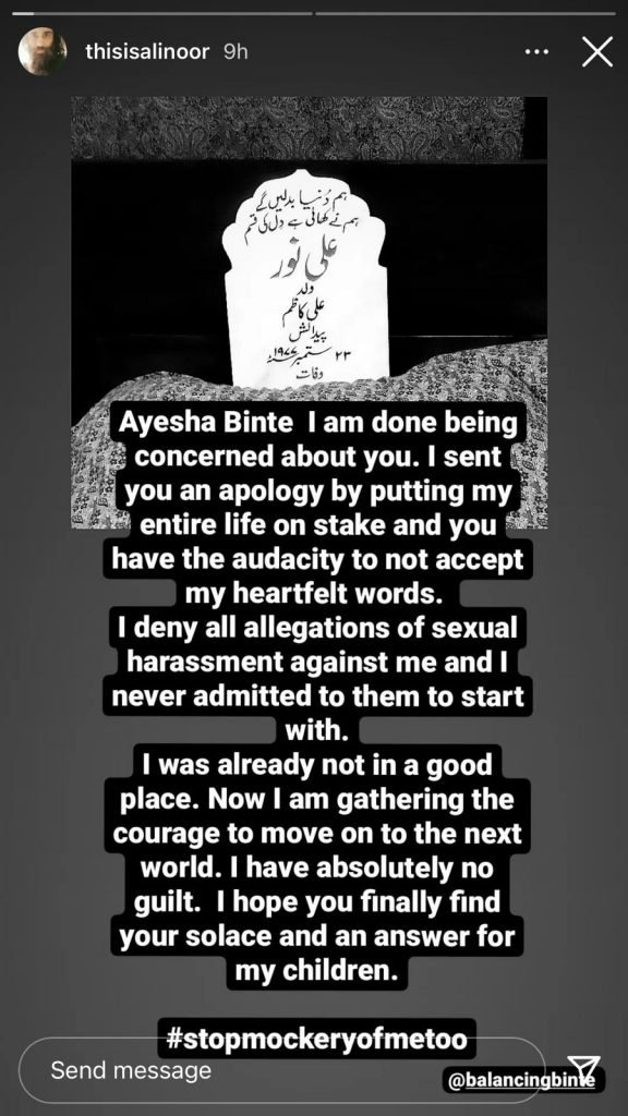Ali Noor was accused of sexual harassment by journalist Ayesha bint Rashid in February 2022 and then by singer Maha Kazmi in April 2023.