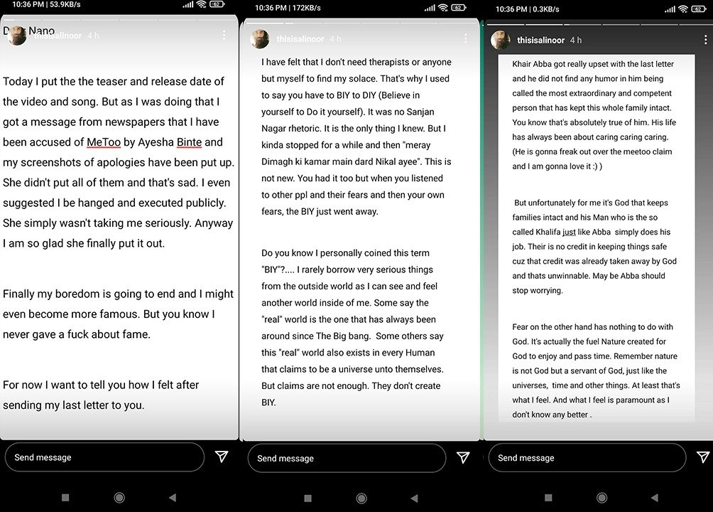 The lead singer of Noori band described the allegations of sexual harassment by the two women as a drama. “I never harassed any woman while every girl felt safe with me. We have been working in a very pleasant mood and this may sound wrong to some people but I have never harassed any woman.”