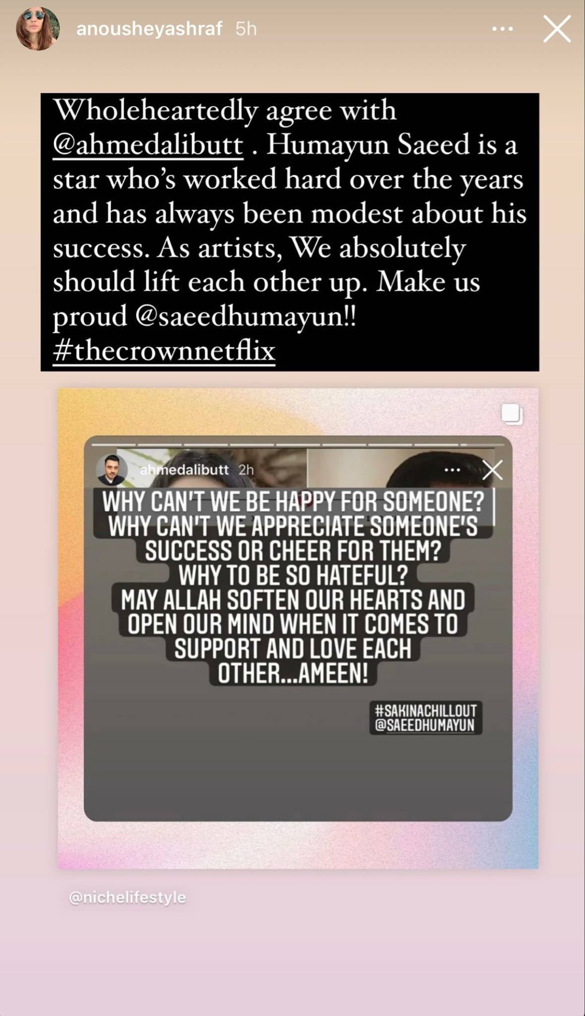 Stylist Anila Murtaza shared an Instagram story with a thought bubble with the name ‘Sana’ in it, and makeup artist Ikram Gohar stated that he knew it was none other than Sana Javed being discussed, calling her a “horrible and unprofessional actress.” Make-up artist Rhyan Thomas applauded those speaking up, sharing that he had the worst experience working with the star, stating that “people like them think no end to themselves.”