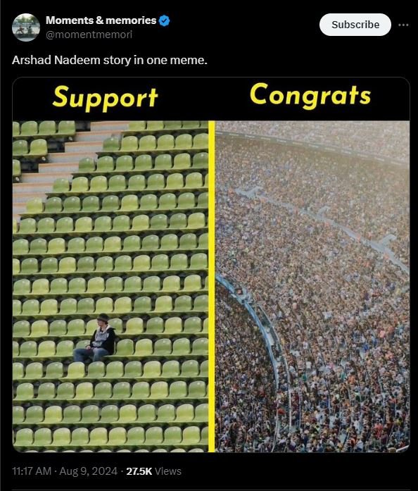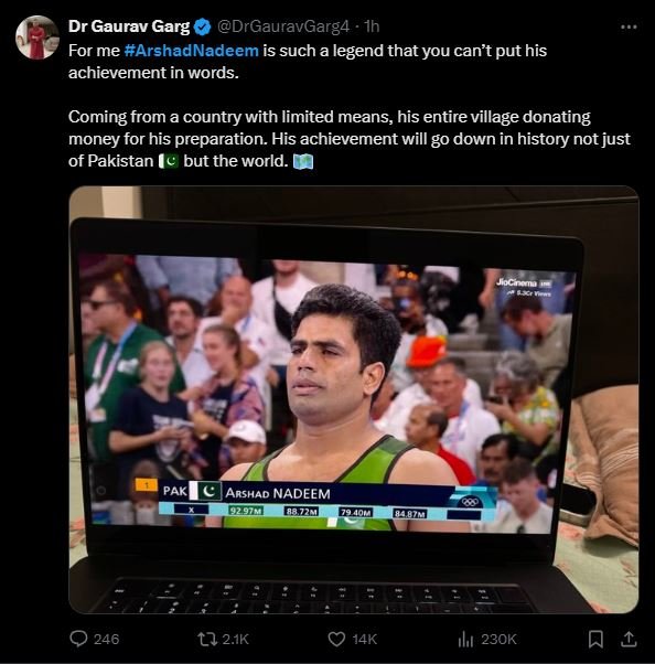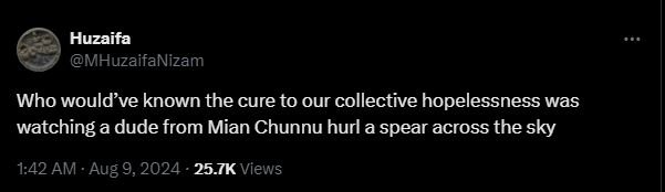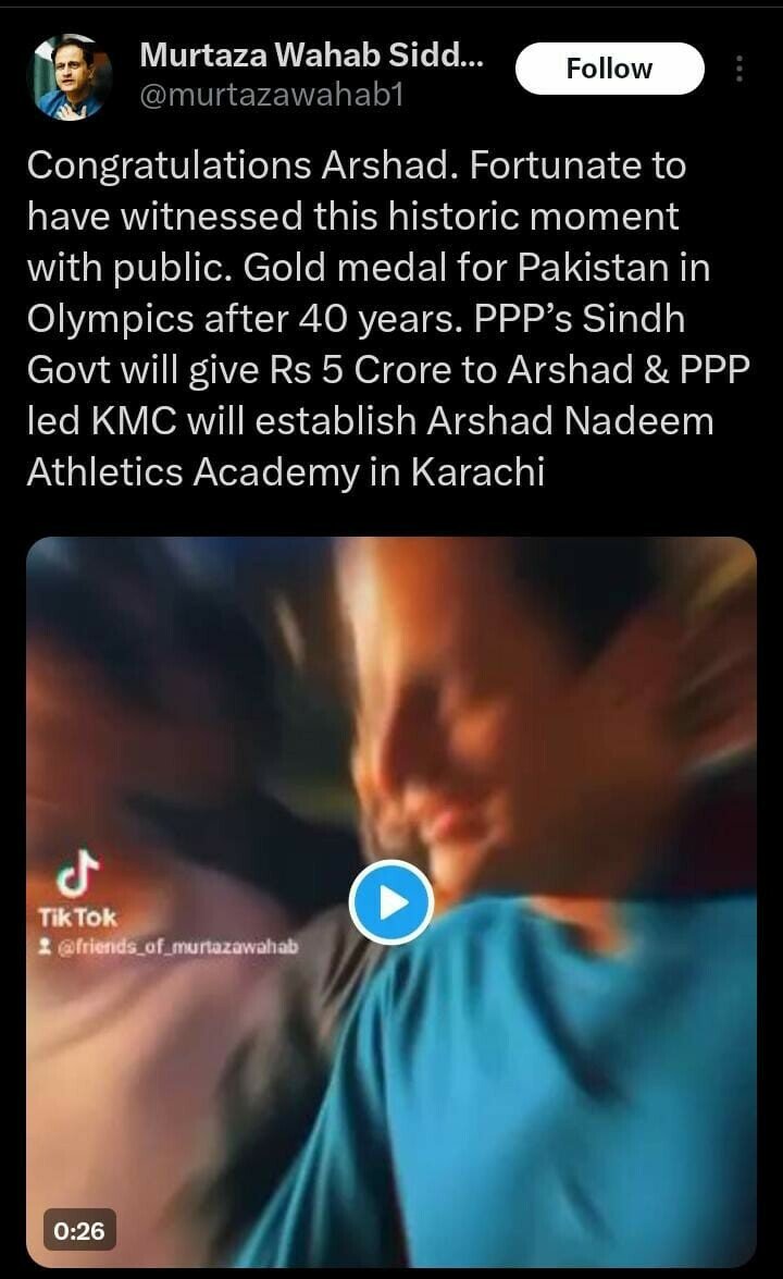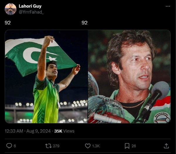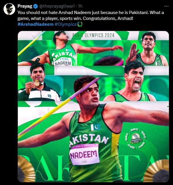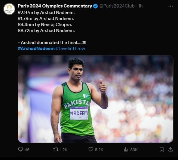 Shortly after, with no other competitor matching Nadeem’s record in their sixth and final attempt, his victory became official.