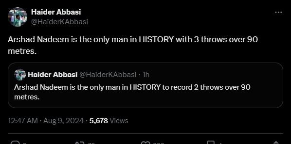 “The previous Pakistani record lasted for nearly two decades, so I was very pleased with my effort,” Nadeem reflected.