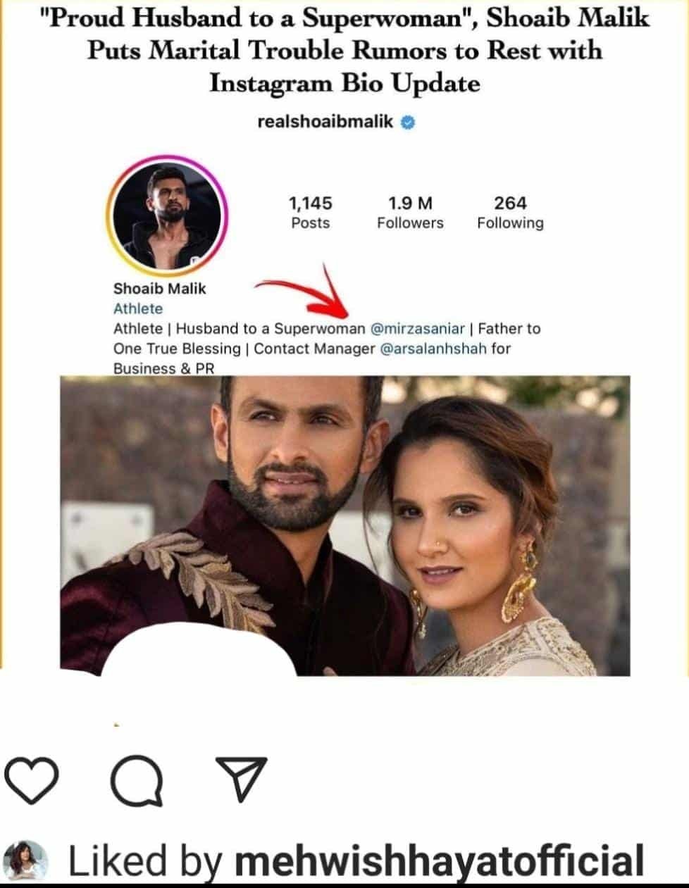 After excerpts from this interview went viral, Shoaib surprised his fans by updating his Instagram Bio. Malik added, “Husband to a superwoman, @saniamirza”.