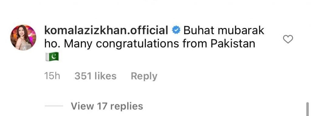 Apart from a plethora of Indian celebrities, Pakistani stars were quick to express their joy and excitement on the VicKat wedding by dropping comments and liking their posts.