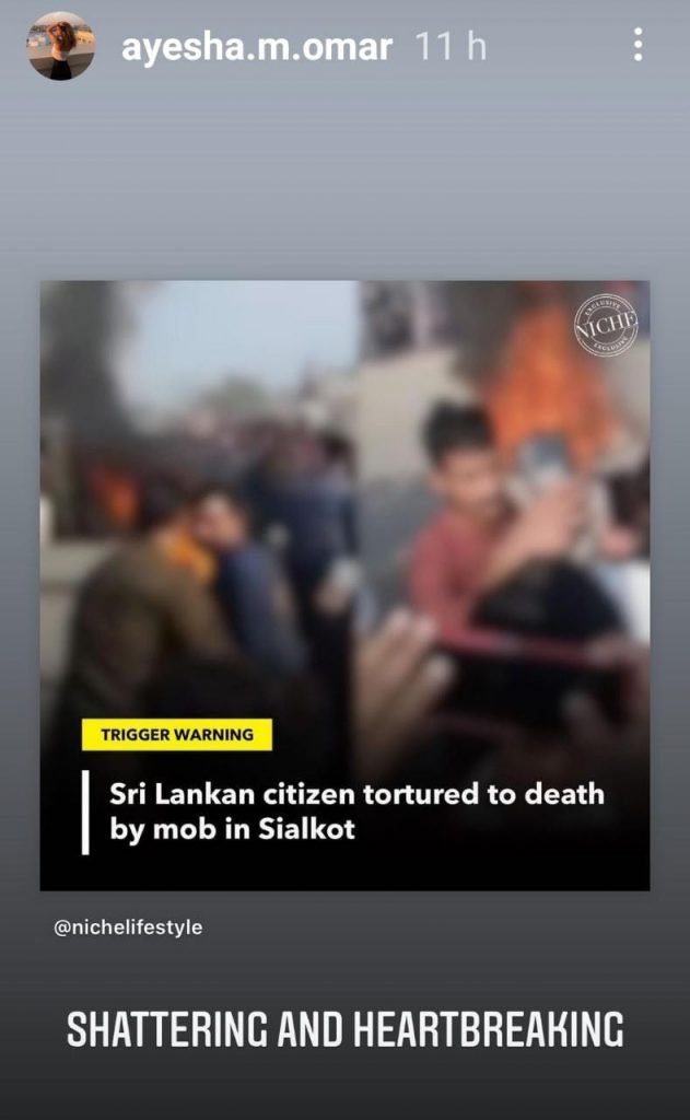 Earlier the Bulbulay diva expressed her grief and shock at the shocking Sialkot incident when a Sri Lankan factory manager has been tortured to death on the charges of blasphemy.