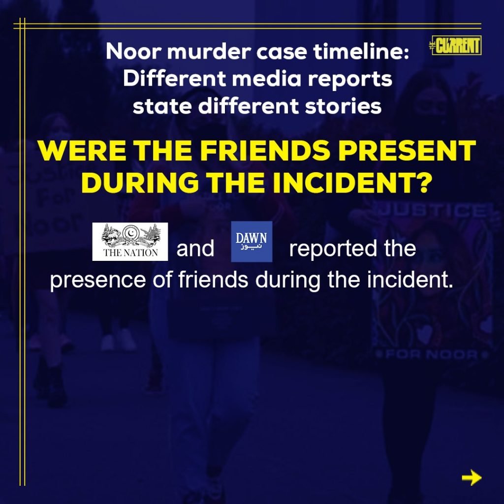 Dawn reported that the SSP Rehman further said her [Noor’s] friends reached the house of the accused, but he refused to let them enter, adding that he remained on the balcony, brandishing weapons and hurling abuses at them. One of the friends informed the girl’s father while another friend called the police.