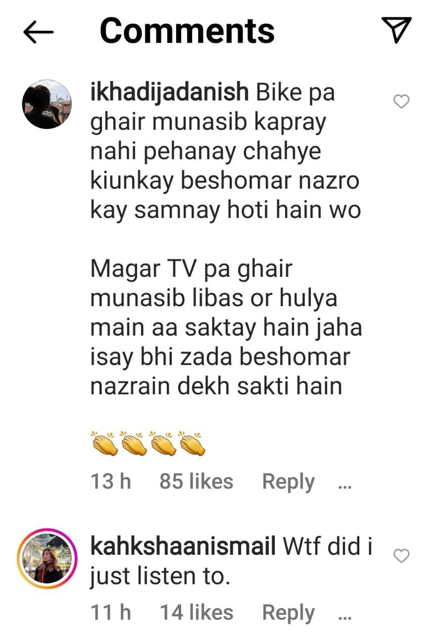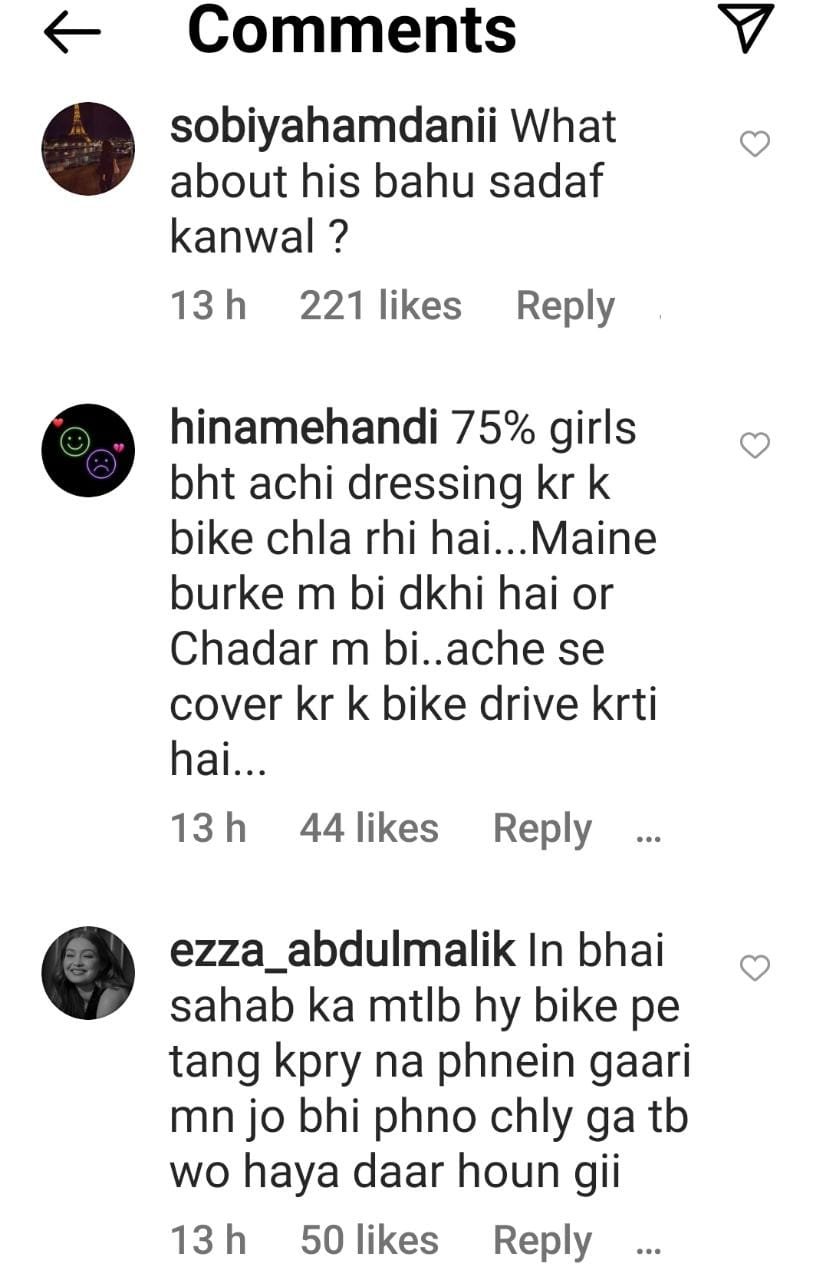 Talking about women wearing tight clothes, he said, “In Pakistan a lot of people have motorbikes, obviously, everyone can’t afford cars, there is inflation and people are barely surviving, but, I have noticed one thing that the dressing of women is not appropriate while sitting on bikes, some women wear weird clothes which cannot be called appropriate, they are not good at all, the clothes are not only see through but usually are very tight, it shows home training, women should be fully covered while sitting on the motorbike. This should be strictly kept in mind. Men should also control their eyes and women should be dressed up in an appropriate manner.”