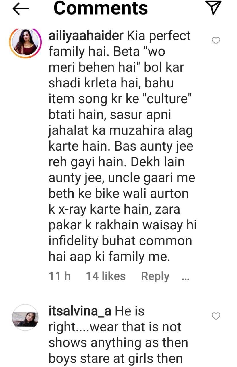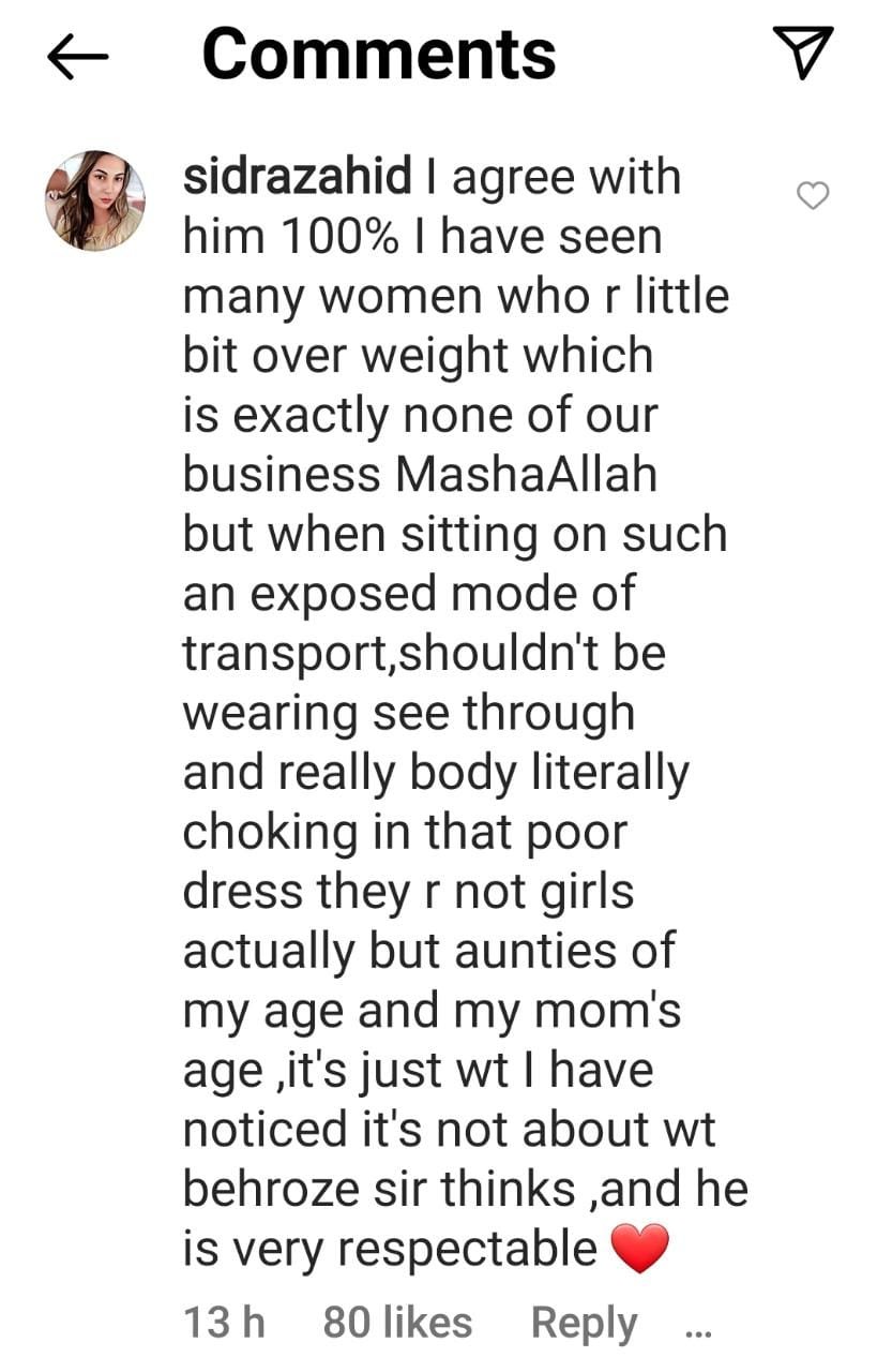 After this interview went viral, actor Iffat Omar slammed Behroze on her Instagram story for his stance on women’s choice of clothing. She termed him a hypocrite and an illiterate.